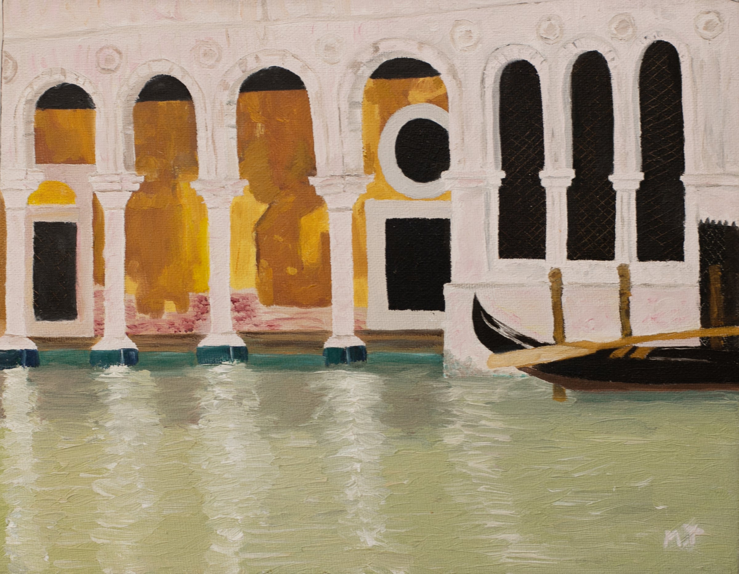 A Gandola in the Grand Canal in Venice Italy: Oil on canvas