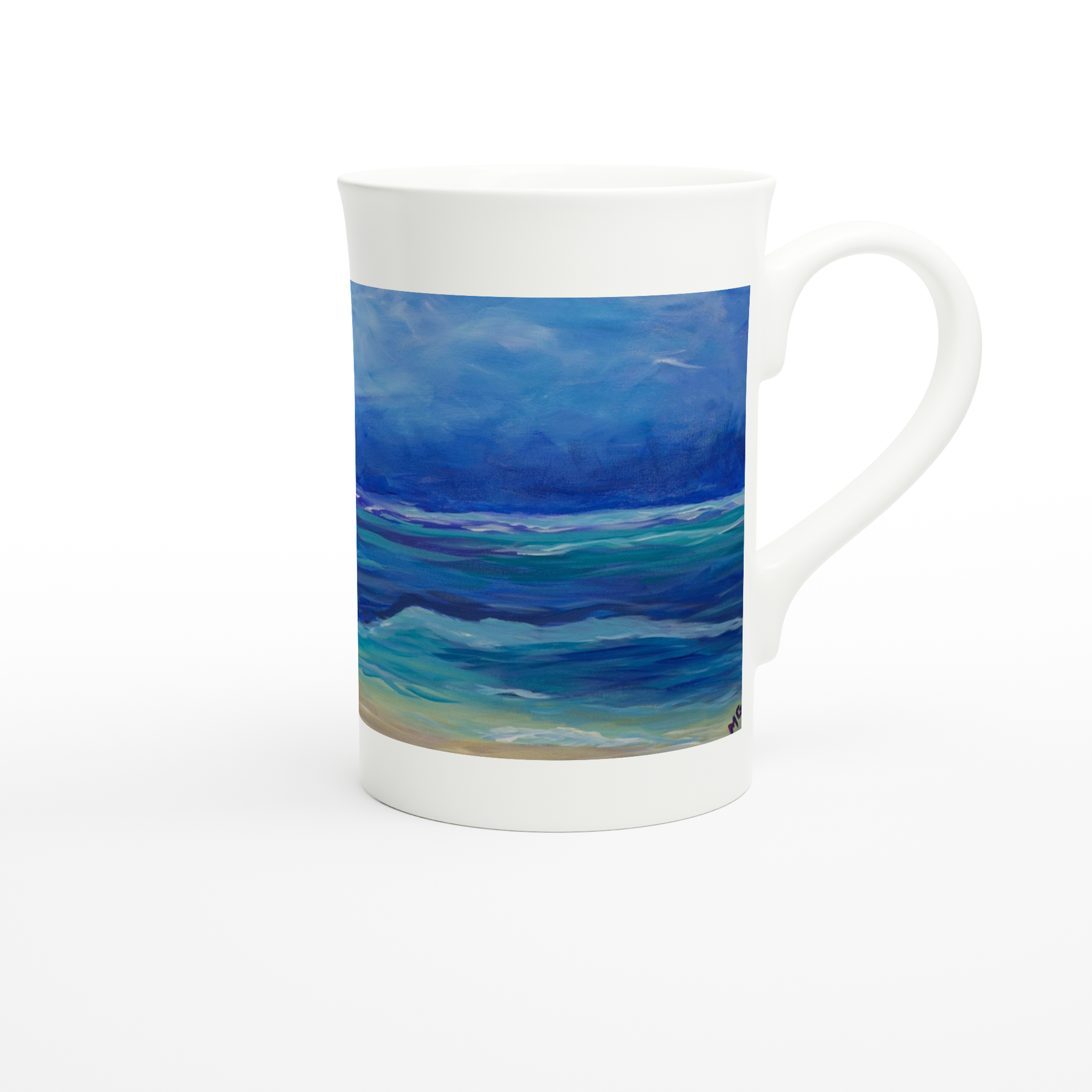 This beautiful slim porcelain mug is perfect for any event of the day. Your morning coffee, a hot chocolate, or any other hot beverage you enjoy. The mug is glossy white and the prints come out beautifully and vividly on it. The print retains its quality and luster when used in both microwaves and the dishwasher.