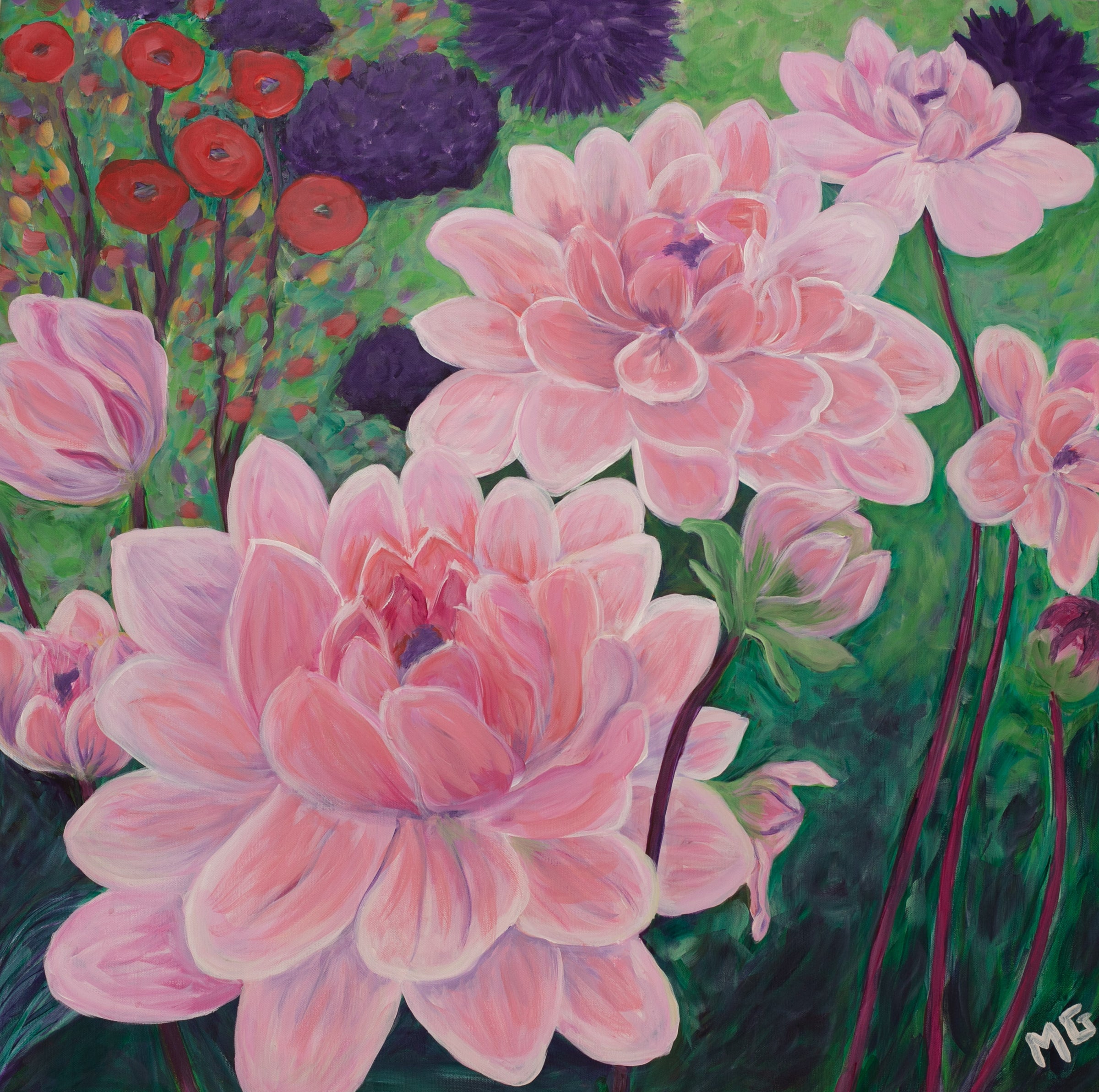 Big Pink Dahlias in full bloom.